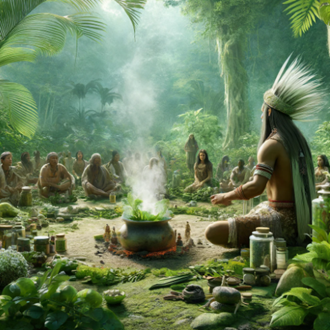 Picture a medicine cabinet that isn't like any other. There is a shelf with Ayahuasca, a bitter drink that holds cosmic secrets.Picture a medicine cabinet that isn't like any other. There is a shelf with Ayahuasca, a bitter drink that holds cosmic secrets. Peyote buttons nearby make you think of the desert. Cannabis, with its shiny leaves, stands tall with all of its health benefits. There's more! If you look harder, you can find minerals that clean the body and mind, snake venom that heals instead of hurts, and conch shell ash that feels like the sea.